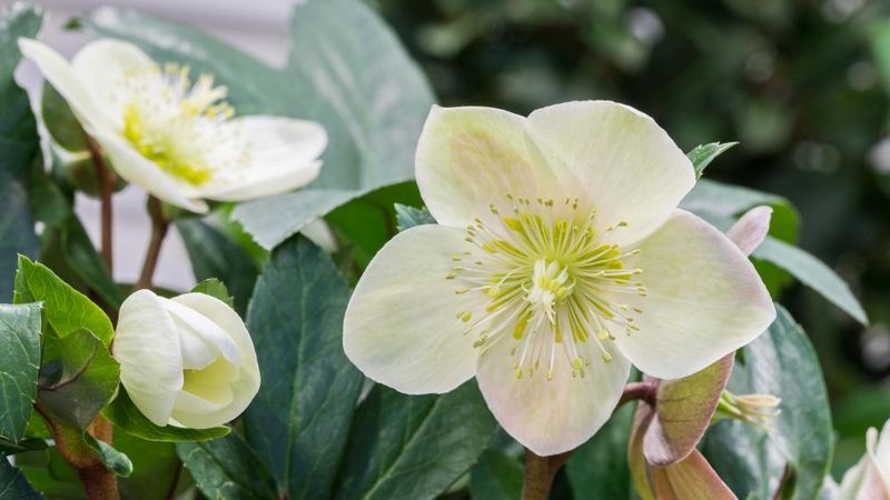 Die klassische Christrose mit ihrer frühen Blütezeit ist normalerweise weiß, im Aufblühen wirkt sie oft leicht grünlich, im Verblühen hat sie manchmal einen rosa Schimmer. Kräftigere Farben von rosa und rot gibt es durch Kreuzungen, vor allem mit den im zeitigen Frühjahr blühenden Lenzrosen (Helleborus x orientalis). Die Christrose kommt aus den europäischen Gebirgen, in Deutschland ist sie deshalb nur in Bayern heimisch. Als hoch geschätzte – aber giftige – Arzneipflanze hat sie sich über die Klostergärten des Mittelalters im ganzen Land verbreitet. Christrosen wachsen in lichten Laubwäldern und schätzen einen nährstoffreichen, kalkhaltigen Boden, der nicht zu trocken, aber auch nicht nass sein sollte. Wenn man ihnen diese Bedingungen im Garten geben kann, dann hat man viele Jahrzehnte Freude an den Pflanzen: Je länger sie stehen, desto schöner blühen sie. Zudem kann ihnen das Winterwetter nichts anhaben, die Blüten erscheinen bei Schnee und Eis.