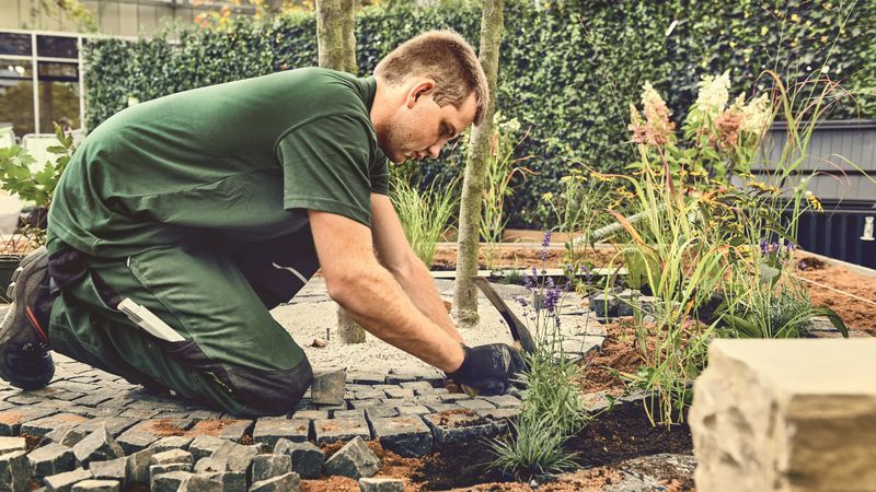 Zu Beginn existiert eine Idee und das Gespräch mit den Kundinnen und Kunden. Was ist gewünscht und realisierbar, welche Elemente sollen integriert werden, welche Pflanzen gefallen und passen zum Standort - gerade letzteres ist eine der Kernkompetenzen von Landschaftsgärtner*innen. Denn welche Gewächse sich für den gewünschten Platz anbieten, ist nicht nur reine Geschmackssache, sondern hängt auch von den Boden- und Lichtverhältnissen ab. Landschaftsgärtner*innen kennen sich im breiten Pflanzensortiment bestens aus. Sie wissen, welche Pflanzen sich für den neu geplanten Garten eignen, welche Arten zusammenpassen, wie sich Gehölze entwickeln, wie groß Bäume werden und wie viel Pflege die Pflanzen im Garten verlangen. Ein dichtes Staudenbeet beispielsweise braucht im Laufe der Jahre deutlich weniger Aufmerksamkeit als akkurate Formgehölze. Wichtig ist daher die Frage, was die Besitzenden bereit sind zu investieren - zeitlich und auch finanziell. Eine Kostenkalkulation der Anlage und bei Bedarf auch der später anfallenden Pflege gehören daher ebenso zu den Aufgaben der Expertinnen und Experten für Garten und Landschaft, wie die praktischen Tätigkeiten. Angefangen bei der Vermessung des Geländes über umfangreiche Erdarbeiten mit großen Maschinen wie Baggern und dem Verlegen von Rohren für Wasser oder Strom bis hin zum Pflastern von Wegen, dem Anlegen einer Mauer, dem Ausheben eines Teichs, der Anlage einer Terrasse und dem Setzen der Pflanzen. Dabei beweisen sie ihr breites Fachwissen zu verschiedenen Materialien ebenso wie ihren geschickten Umgang mit allerhand Maschinen und Geräten. Im Mittelpunkt bei all dem steht die Arbeit im Team, denn nur gemeinsam lassen sich die großen grünen Projekte realisieren.