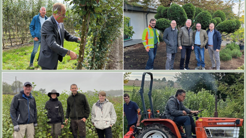 Die Kombination aus Betriebsbesichtigung, Austausch und Praxis begeistert auch die Teilnehmenden aus der Politik. „Ich bin gerne der Einladung des Bundes deutscher Baumschulen in die Baumschule Hermann nach Kurscheid gefolgt. So konnte ich einen interessanten Einblick in die heimische Baumschulwirtschaft erlangen, mir aber auch von den Herausforderungen der Branche berichten lassen.“, bewertet der Abgeordnete Erwin Rüddel seinen Termin.
