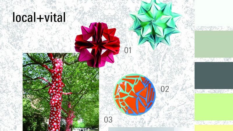 Die Stilwelt „local + vital“ steht für Fröhlichkeit und Kreativität. Sie lebt vom lokalen Kolorit und ist daher ideal, um die Charakteristika der nahen Umgebung, des geliebten Stadtviertels oder der unmittelbaren Nachbarschaft in den Fokus zu setzen. „Nähe und kurze Wege bedeuten Lebensqualität, das ist eine Erkenntnis dieser Zeit. Besonders in den Sommermonaten stellen private und öffentliche Outdoor-Flächen begehrenswerte Freiräume dar, die sich zum Zentrum des Lebens entwickeln. Schließlich entkoppeln sich unsere Arbeit und viele Aktivitäten auch immer weiter von fest definierten Räumen. Arbeiten, Feiern, Sport machen und Freunde treffen – vieles davon verlagert sich nach draußen. Für unsere Feste schmücken wir jetzt gerne mit vielfarbigen, heiteren Dekorationen, die immer auch eine entspannte DIY-Attitude mitbringen – mit besonders umweltbewussten und einfallsreichen Gestaltungen. Diese Aspekte lassen sich sehr gut auf die Schaufenster und Ladenflächen übertragen“, sagt Trendexpertin Claudia Herke vom Stilbüro Bora.Herke.Palmisano.