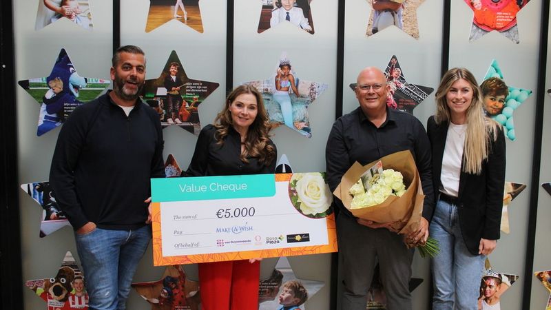 SnowStorm+ ist die perfekte Blume, um für diese Kampagne zu werben - ihre Blütenblätter symbolisieren Hoffnung, Reinheit und Neubeginn, genau wie die Kinder, deren Wünsche von der Stiftung erfüllt werden. Am vergangenen Freitag überreichte das Promotion-Team am Hauptsitz von Make-A-Wish Netherlands einen Scheck im Wert von 5.000,-. Euro.