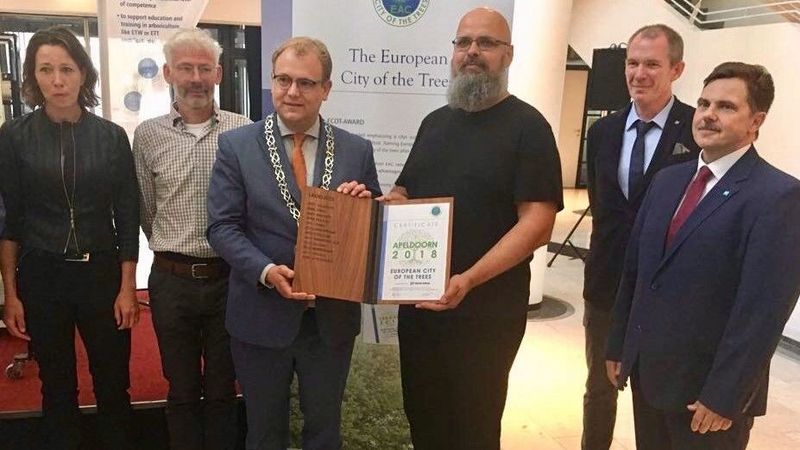 Die niederländische Stadt Appeldoorn ist „European City of the Trees 2018 (ECOT)“. Die drittgrößte Gemeinde der Niederlande wurde Anfang Juni 2018 vom Europäischen Baumpflegerat (EAC) mit dem begehrten Titel ausgezeichnet. „Die Menschen atmen Bäume“, so lautet das Fazit von Jan Goevert, Leiter der EAC-Arbeitsgruppe ECOT. „Man spürt förmlich die positive Wirkung der Bäume auf die Ausstrahlung der Menschen in Apeldoorn“, fügt Goevert nach der Besichtigung der Innenstadt Apeldoorns an. Die Auszeichnung zur „Europäischen Stadt der Bäume“ wurde von Tomáš Guniš, Stadtarchitekt im slowakischen Trnava, dem Preisträger 2017, im Beisein von Baumexperten aus ganz Europa am 8. Juni 2018 dem Vizebürgermeister Mark Sandmann überreicht. Zuvor führte er die Mitglieder des EAC durch die Innenstadt Apeldoorns und erläuterte verschiedene Baumprojekte.