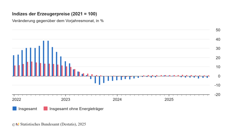 - Erzeugerpreise Oktober 2025: -1,8% gegen...