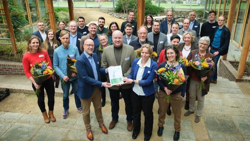 Während der feierlichen Präsentation am 14. Februar 2024 wurde in Anwesenheit von Vertretern der Projektpartner und der Gerätehersteller u.a. die endgültige Freigabe gefeiert. Projektleiterin Roline Broekema von Wageningen University & Research übergab unter den wachsamen Augen der Konsortialpartner und des Vorsitzenden des Technischen Sekretariats, Albert Haasnoot (Royal FloraHolland), das FloriPEFCR-Heft symbolisch an Jeroen Oudheusden (Executive Officer Floriculture Sustainability Initiative). Dieser Moment markiert den Startpunkt für den nächsten Schritt der FloriPEFCR.