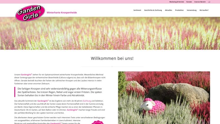 Rechtzeitig zur neuen Saison ist er fertig, der neue Internetauftritt für die Gardengirls® der Heidezüchtung Kramer. Der Marktführer unter den Knospenblühern hat in den letzten Wochen die Internetseiten komplett neu aufgesetzt. Neben zeitgemäßer Lesbarkeit und Navigation auf allen Endgeräten umfasst die Webseite einen eigens erstellten Sortiments-Separator. Hiermit können Interessierte die verfügbaren Sorten nach Jahreszeit in den Sortimentslinien und gleichzeitig nach Farbe suchen. So wird das umfangreiche Sortiment sofort intuitiv greifbar für Profis und Interessierte.