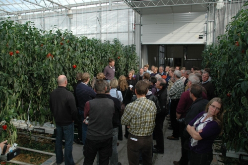 Prominente Vorzeigeprojekte für die Abwärmenutzung wurden bei den anschließenden Betriebsbesichtigungen in Augenschein genommen. Die Gewächshäuser der Vitarom frischgemüse GmbH & Co. KG in Hemmingstedt erhalten ihre Wärme von der nahe gelegenen Raffinerie und beheizen damit insgesamt 120.000 m² Gewächshausfläche, auf denen Paprika und Tomaten kultiviert werden. Während die Versorgung mit Abwärme unkompliziert verläuft, nehmen den Betriebsleiter Jens Kühn andere Aufgaben weitaus mehr in Anspruch. Ein hoher Aufwand wird betrieben, damit eine ausreichende Anzahl motivierter Arbeitskräfte für die Arbeiten in den Gewächshäusern zur Verfügung steht. Darüber hinaus sind noch immer nicht alle Bauarbeiten der erst im Jahr 2009 errichteten Gewächshausanlage abgeschlossen, so dass in der Startphase mit zahlreichen provisorischen Lösungen gearbeitet werden musste.