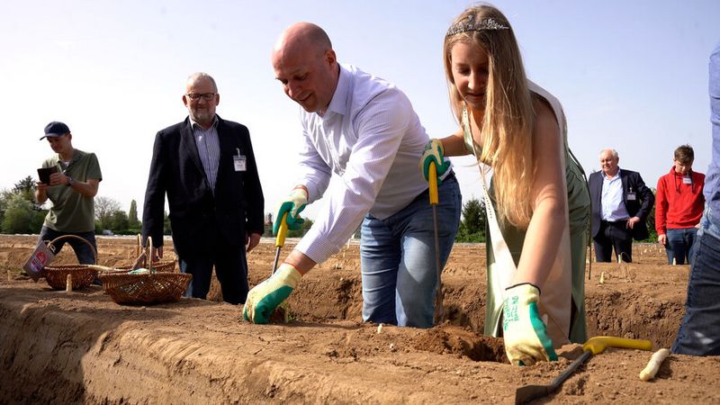 „Es gibt ein ausreichendes Angebot in hervorragender Qualität. Aus gutem Grund raten Experten zu regionaler und saisonaler Ernährung. Regionaler und saisonaler als beim hessischen Spargel geht es nicht mehr“, sagte Hessens Landwirtschaftsminister Ingmar Jung am Montag in Zwingenberg (Kreis Bergstraße). Zusammen mit der neuen hessischen Spargelkönigin Lena Wendel stach der Minister bei der traditionellen Saisoneröffnung symbolisch die ersten Stangen des beliebten Edelgemüses.