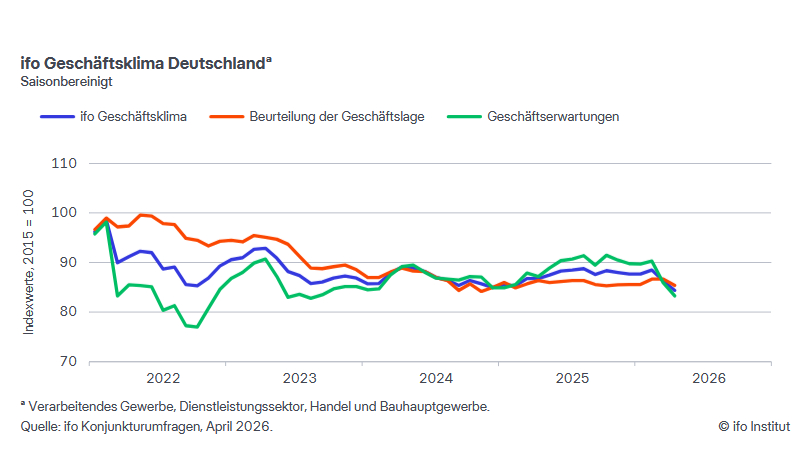 ifo: Geschäftsklimaindex weiter gesunken