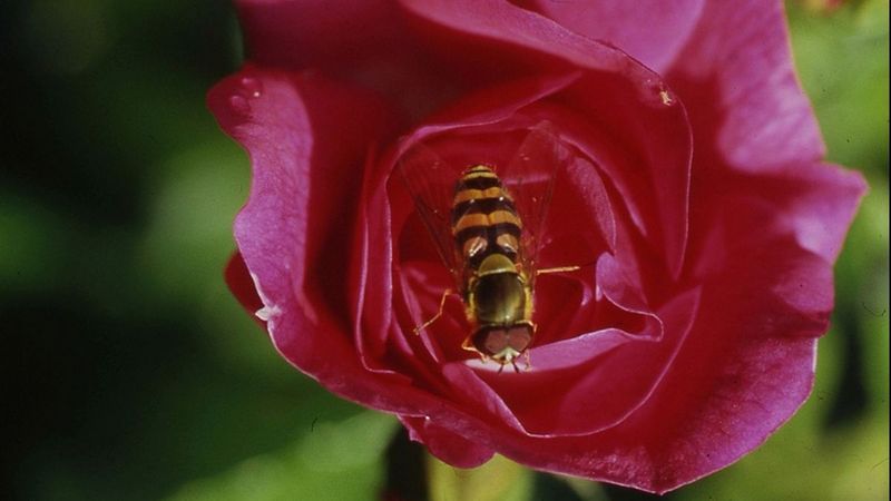 Bestimmte Gartenrosen erfreuen sich auch wegen ihrer mit Nektar gefüllten Blüten in naturnahen Gärten großer Beliebtheit. Ungefüllte oder halbgefüllte Sorten haben einen großen Nutzen für die Insektenwelt, weil hier keine Blütenblätter den Weg zu den Staubgefäßen und Nektarien versperren. Durch ihre den ganzen Sommer über währende Blüte liefern sie wesentlich mehr Pollen als Wildrosen mit ihrem nur kurzlebigen Blütenaustritt im Mai. Einige Sorten punkten zudem mit herrlichem Duft und später mit attraktiven Hagebutten, die sie auch im Herbst und Winter zum Hingucker machen. Andere Sorten klettern in Bäume und blühen dort üppig. Bei einigen Beet- oder Strauchrosen erstreckt sich die Blütezeit bis in den Spätherbst, was sie für Bienen und Hummeln zu einer wertvollen Futterquelle in der nahrungsarmen Zeit macht.