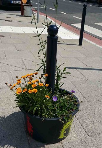 Der "Bremer Grünpoller" soll Bremens Straßen und Plätze bunter und lebendiger machen. Jedenfalls wenn es nach den "Erfindern" dieser neuen, begrünbaren Variante des stählernen Standardpfostens geht. Im Bremer Stadtteil Findorff stehen jetzt die ersten der neuen Grünpoller und sorgen für ein buntes und lebendiges Straßenbild. Zur Freude der Anwohner und benachbarten Geschäftsleute. Hinter dem Bremer Grünpoller steht eine so einfache wie pfiffige Idee: Bunt gestaltete Mauerkübel werden mit Erde gefüllt, passgenau über die kahlen Sperrpfosten gestülbt und danach nach Lust und Laune bepflanzt. Entstanden ist die grüne Pollervariante im Rahmen eines Aktionstages, bei dem viele Anwohner einen neuen Stadtplatz mit kreativen Aktionen, Blumen, Pflanzkübeln und Sitzmöbeln neu gestaltet haben.