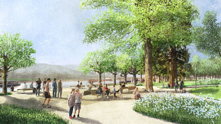 „Mit der nun deutlich erhöhten Landesförderung schaffen wir die Grundlage, den Hafenpark in Rüdesheim zu einer vielseitigen, grünen Oase am Rheinufer weiterzuentwickeln und gleichzeitig neue Potenziale für das Stadtgebiet zu erschließen“, erklärt Heimatminister Ingmar Jung.