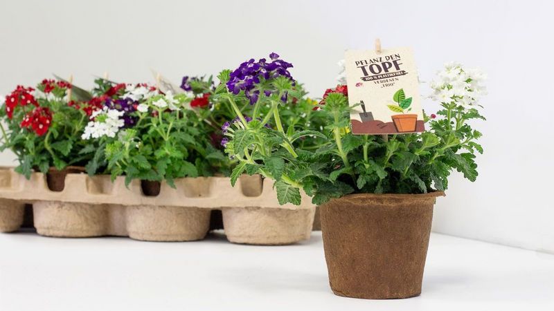Zusammen mit den Mitgliedsbetrieben hat Landgard z.B. das Konzept „Pflanz den Topf“ entwickelt und intensiv in der Praxis getestet. Getreu dem Motto „100 Prozent plastikfrei“ kommen die darunter angebotenen Produkte vollständig ohne Kunststoff aus. Beliebte Beet- und Balkonpflanzen wie Calibrachoa, Dahlia, Dianthus, Petunia, Verbena oder Gemüsepflanzen wie verschiedenen Tomaten- und Gurkensorten wachsen in kompostierbaren, plastikfreien Töpfen, die vom Verbraucher einfach mit eingepflanzt werden und sich in der Erde zersetzen. So macht Plastikverzicht Spaß!