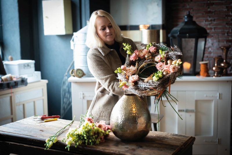 Die vier führenden Blumendesigner, die sich dem Making Off verschrieben haben, sind Hanneke Frankema, Geertje Stienstra, Tiffany van Lenten und Tineke Geerlings. Sie kleideten das Lisianthus in eine weihnachtliche Atmosphäre innerhalb von fünf Farbpaletten, die von traditionellem Weihnachtsrot und -weiß bis hin zu kühnen Trendtönen wie Dunkelblau und den neuen Nude-Tönen reichten. Die schillerndsten Kreationen kamen vor. Mega-große Arrangements, aber auch kleine und feine, hängend und für auf den Tisch. Dekorative Stilleben, komplette Kerzenständer, Schalen, ein Blumenstern für an der Wand und sogar ein eleganter Brautstrauß für die Winterbraut. In der Ausführung sind mehrere Stile vertreten, von romantisch bis klassisch, aber auch zeitgenössisch. hip und trendy. Kurz gesagt, reichlich Inspiration für alle Zielgruppen und Altersgruppen.