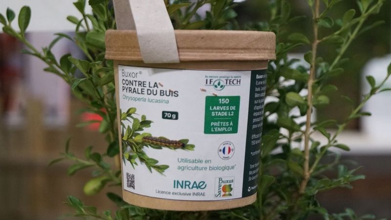 Buxor 150 L ist ein Behandlungsmittel gegen den Buchsbaumzünsler auf Basis der Florfliege Chrysoperla lucasina (Larve im L2-Stadium). Diese Larven sind in der Lage, sich bis zu 15 Tage nach ihrer Ausbringung von den Eiern und Raupen zu ernähren. Dies ist eine effektive, leicht anzuwendende ökologische Methode, um Parks und Gärten sowie natürliche Waldgebiete zu schützen, ohne die Umwelt zu schädigen.