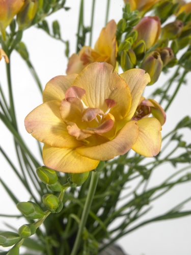 Freesien sollten weiß, gelb oder violettblau sein. Aber Freesien in Apricot? Einem niederländischen Züchter ist es gelungen, eine Freesie in dieser überraschenden Farbvariante zu entwickeln.