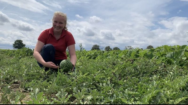 „Weil das Kürbisgewächs sehr empfindlich gegenüber Kälte reagiert, dürfen die kleinen Pflanzen erst nach den Eisheiligen gepflanzt werden“, weiß die 22-jährige, die an der Hochschule Osnabrück Landwirtschaft studiert. Ab dann heißt es Aufpassen, damit die zarten Melonenpflanzen keinen Temperaturen unter zwölf Grad Celsius ausgesetzt sind. „Zur Not müssen wir sie dann mit Vlies abdecken“, erklärt Henrike Vorlop. Auf dem Ackerbaubetrieb der Familie wachsen die Exoten auf Dämmen, die mit schwarzer Folie überzogen sind, was eine schnellere Erwärmung des Bodens begünstigt und somit eine frühere Reife der Früchte. „Anders als Melonen aus Spanien oder Italien werden bei uns die großen runden Früchte erst ab Anfang August reif, denn hierzulande treiben erst die späten, langen und warmen Tage die Reife voran“, sagt Henrike Vorlop. Dafür sind die Melonen nicht nur süß, saftig und lecker, sondern saisonal und regional gewachsen und der Kunde leistet so seinen Beitrag zum Umweltschutz.