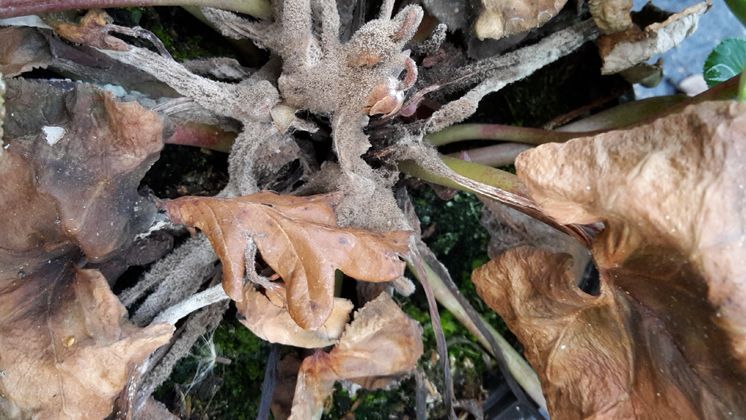 Rhizoctonia befällt den Wurzelhals und insbesondere junges Pflanzenmaterial in dichten Beständen. Nach der Infektion wird ein weißes fadenartiges Mycel auf der Substratoberfläche sichtbar. Ungünstige Bedingungen wie hohe Substrat- und Luftfeuchte, ein hoher Salzgehalt im Substrat oder mangelnde Hygiene fördern den Befall. Rhizoctonia ist oftmals in Vermehrungen und Jungpflanzen zu finden.