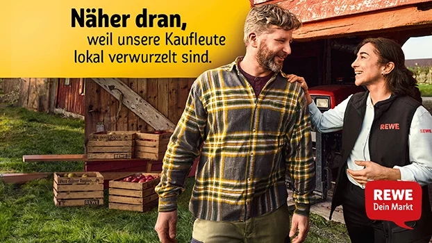 Für REWE ist Nähe gelebte Unternehmensphilosophie - gegenüber Kund:innen und lokalen Lieferanten und Erzeugerinnen. Deutlich wird dies in der neuen Kampagne „Näher dran“. Dank der langjährigen und partnerschaftlichen Zusammenarbeit mit Landwirt:innen und Lieferant:innen in ganz Deutschland profitieren REWE Kund:innen von einem umfangreichen Angebot an frischen, regionalen und saisonalen Produkten - in allen REWE Märkten.