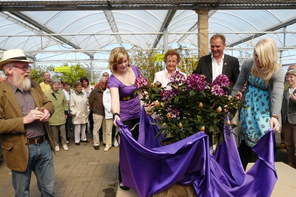 Die Baumschule Hachmann war am 19. April wieder einmal Reiseziel zahlreicher Rhododendron-Liebhaber. Zum 6. Mal fand dort die beliebte Vorfrühlingsschau statt. Den rund 2.000 Besuchern wurde in diesem Jahr mit der feierlichen Taufe der Rhododendron-Neuheit „Hans Hachmann“ etwas ganz Besonderes geboten. Moderiert vom bekannten Fernsehgärtner mit dem grünen Daumen „John Langley“, tauften die Enkeltöchter des im Jahr 2004 verstorbenen Züchters die Rhododendron-Neuzüchtung auf den Namen ihres Großvaters.