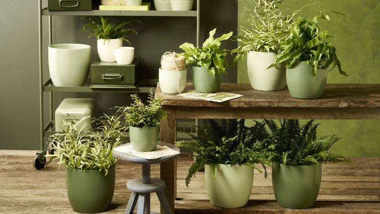 Kein Farbton wird so mit dem Thema Natur verbunden wie Grün. Weil das Bedürfnis nach Natur weiter anhält, bestimmt ein Spektrum von Grünschattierungen das Interieur 2018. Soendgen Keramik entwickelte daraus die neuen Farben „Moosgrün“ und „Lindgrün“ für die Erfolgsserie „Basel Fashion“. Die Tönungen sind bewusst elegant zurückhaltend gewählt, sodass sie sich hervorragend in die Pflanzenwelt integrieren. Die seidig-matte Oberfläche der Gefäße unterstreicht zudem den natürlichen Look. Dazu lassen sich Grünpflanzen wie Farne, Feilblatt oder Aloe kombinieren. Mit einer Bandbreite von acht Größen (12 bis 27 cm) ist „Basel Fashion“ als Regalserie konzipiert. Zusammen mit Einrichtungsgegenständen aus Holz, Korb und Stein gelingt aber auch die Gestaltung schöner Trendtische, welche echtes Natur-Feeling aufkommen lassen.