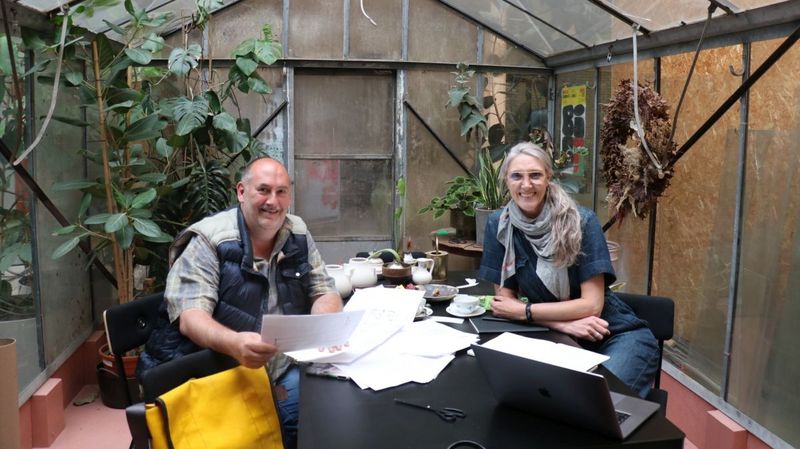Judith Baehner von 'Het Groenlab' und Oliver Mathys 'I green you' bitten zu Tisch. Ein im niederländisch genannter 'Aanschuiftafel' steht im Zentrum - also ein Tisch bei dem man sich dazu setzt und zusammen spricht.