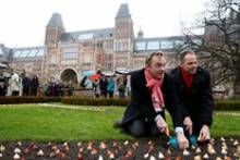 Diesen Frühling blühen in den Gärten des Rijksmuseums Tulpensorten aus dem 17. Jahrhundert. 2.000 Blumenzwiebeln wurden im vergangenen Herbst vom Direktoren des Keukenhofs, Bart Siemerink, und dem Direktoren des Rijksmuseums, Wim Pijbes, eingepflanzt. Unter den verschiedenen historischen Blumensorten ist zum Beispiel die Lac van Rijn, die bereits 1629 zum ersten Mal erwähnt ist. Im Rijksmuseum befinden sich zahlreiche Kunstwerke aus dem sogenannten „Goldenen Zeitalter“, die die historischen Tulpensorten zeigen.
