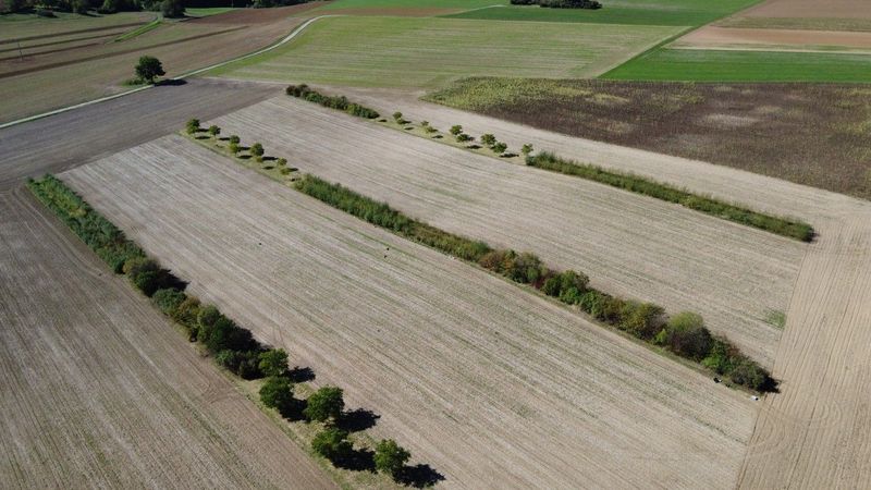 So konnten die Forschenden die Erträge von fünf Winterkulturen − Wintererbsen, Triticale, Wintergerste, Winterweizen sowie Raps − in sieben Vegetationsperioden zwischen 2012 bis 2023 analysieren. Die Kulturen wurden zwischen drei verschiedenen Gehölzstreifen angebaut: Hecken mit einheimischen Bäumen und Sträuchern, Reihen mit Walnussbäumen zur Produktion von Nüssen und sogenannte Weiden-Kurzumtriebsplantagen. Hier dienen die schnell wachsenden Bäume dazu, innerhalb kurzer Zeit Holz-Hackschnitzel als nachwachsenden Rohstoff für die Energiegewinnung zu produzieren.