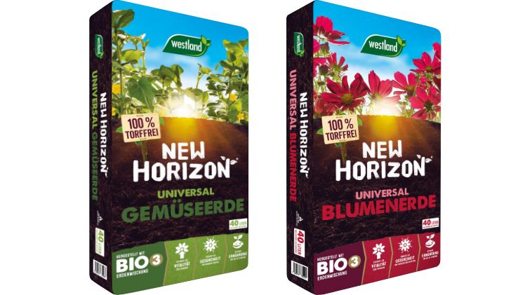 Mit New Horizon präsentiert Westland den perfekten Torfersatz. Wie der natürlich vorkommende Torf steigert die BIO3 Erdenmischung der New Horizon Blumenerde die Vitalität der Pflanzen und fördert die Gesundheit von Wurzeln, Blättern und Blüten. Die hochwertige New Horizon Gemüseerde unterstützt die gute Ernte von Tomaten, Zucchini & Co. New Horizon liefert die optimale Versorgung für alle Pflanzen über den Zeitraum von 4 – 6 Wochen – echte Nachhaltigkeit hat damit im Bereich Gärtnern einen neuen Namen. (BLIES)