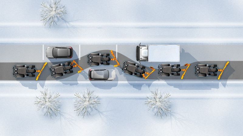 Die dadurch erzielte Funktionalität ist faszinierend: Fortan reicht ein einziges Schild, um Gehwege, Großflächen sowie Straßen- und Parkplätze präzise und effizient zu räumen. Und dafür wird lediglich ein Trägerfahrzeug benötigt. Unproduktive, nicht vergütete Leerlaufzeiten durch die Logistik diverser Starrschilde und Trägerfahrzeuge entfallen. Ein einziges Fahrzeug mit multifunktionalem Schild reicht fortan. Eine solche Kombination könnte mit Fahrerwechsel sogar rund um die Uhr zum Bedarfsräumen unterwegs sein.