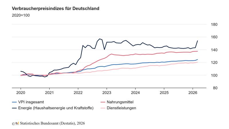 "Die deutlichen Preissteigerungen bei den Energieprodukten treiben die Inflation. Insbesondere Kraftstoffe und Heizöl haben sich für die Verbraucherinnen und Verbraucher seit Beginn des Iran-Kriegs sprunghaft verteuert", sagt Ruth Brand, Präsidentin des Statistischen Bundesamtes. Gegenüber dem Vormonat Februar 2026 stiegen die Verbraucherpreise im März 2026 um 1,1%.