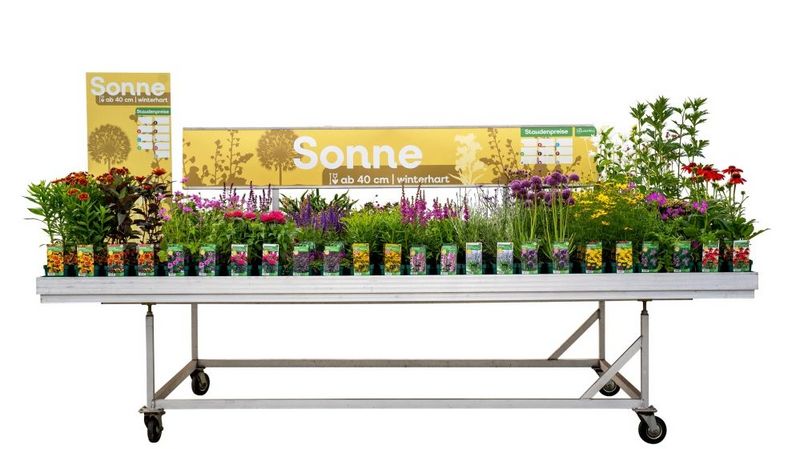 Mit neu gestalteten Bildetiketten, Tischaufstellern und -bannern lässt sich eine moderne und übersichtliche Staudenpräsentation umsetzen. Das System umfasst drei Designlinien: „Silhouette“, „Classic“ und „Pure“. Jede Linie überzeugt durch eine klare Gestaltung und ermöglicht dem gärtnerischen Fachhandel eine verkaufsfördernde Kundenansprache. Neben den klassischen Präsentationsbereichen bieten Aktionsthemen zusätzliche Verkaufsimpulse. Themen wie „Heimische Wildpflanzen“, „Trockenheitsverträglich“ oder „Insektenfreundlich“ werden durch passende Tischaufsteller und -banner unterstützt. Alle Verkaufshilfen zeichnen sich durch wetterbeständige Materialqualität aus und bieten durch klar strukturierte Informationen eine gute Orientierung auf der Verkaufsfläche.