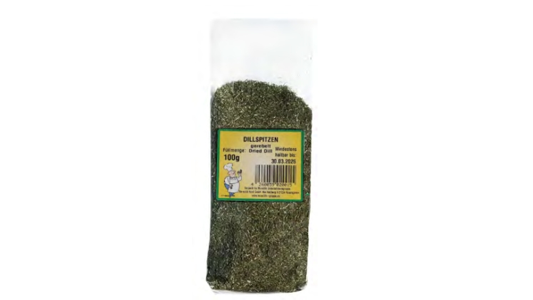 Lebensmittelwarnung: Produktrückruf Dillspitzen gerebelt, 100g