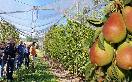 Mehr als vierzig Birnenexpertinnen und -experten, Vermarktungsfachleute, technische Beraterinnen und Berater und Produzentinnen und Produzenten aus Frankreich, Belgien, Italien und der Schweiz trafen sich, um wissenschaftliche und technische Aspekte sowie den Vertrieb und das Marketing dieser Sorte zu diskutieren. Agroscope präsentierte Lösungen für verschiedene Herausforderungen in der Produktion und der Nachernte, um die Entwicklung von Lagerkrankheiten im Zusammenhang mit der kontrollierten Atmosphäre zu verhindern. Diese Lösungen, die in der Gruppe "Obstkulturen im Alpenraum" am Agroscope Conthey erarbeitet wurden, steigern das Marktpotenzial der FRED®-Birne erheblich. Da die Produktionssysteme in den verschiedenen Regionen unterschiedlich sind, war der Austausch zwischen den Teilnehmenden besonders wertvoll. (Agroscope)