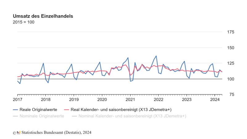 Statistik: Einzelhandelsumsatz im April 2024 um 1,2% niedriger