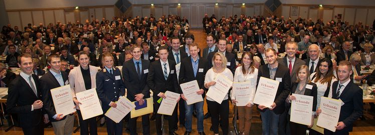 Die Landwirtschaftskammer Nordrhein-Westfalen hat erneut Nachwuchsförderpreise gestiftet, mit denen die jeweils besten Absolventen der Abschlussprüfungen in den grünen Berufen, der Meisterprüfungen sowie der Fachschulen geehrt wurden. Präsident Johannes Frizen und Johannes Remmel, Landeslandwirtschafts- und Umweltminister sowie Kammerdirektor Dr. Martin Berges, überreichten die Förderpreise, die mit einer Urkunde und einem Buchgeschenk verbunden sind, am 8. Dezember während der Hauptversammlung der Landwirtschaftskammer in Bad Sassendorf im Kreis Soest. Die Landwirtschaftskammer betreut zurzeit etwa 8.350 Auszubildende und mehr als 1.000 Studierende in den Fachschulen für Landwirtschaft und Gartenbau.