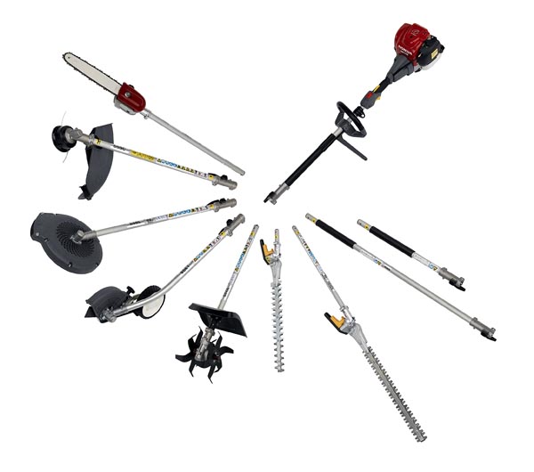 Eingesetzt werden diese Technologien bei den sechs Freischneider Varianten. Vier Versionen mit starrer (7-fach gelagerter) Welle und jeweils eine mit flexibler bzw. gebogener Welle. Alle haben den Komfort-Tragegurt gemeinsam, um nachhaltig und kraftsparend auch an schwer zugänglichen Stellen oder in schwierigem Gelände professionell arbeiten zu können. Jeweils die Hälfte der angebotenen Geräte werden von beiden Motoren angetrieben. Je nach Arbeits-Schwerpunkt werden sie entweder mit Ein- oder Doppelhandgriff geliefert. Zum Einsatz kommen auch berührungslose Dichtungslager - eine High-End-Technologie, die auch bei der NASA verwendet wird und beste Abdichtung gegen Staub bei Hochgeschwindigkeitsanwendungen garantiert. Alle Geräte sind mit optionalen Zubehör-Werkzeugen ausrüstbar. Dies sind der halbautomatische Tap & Go Nylonfadenkopf in 5-Zoll (anstelle einer herkömmlichen 4-Zoll-Version), das 3- oder 4-Zahn-Dickichtmesser, die Heckenschere, der Hoch-Entaster oder das Sägeblatt.