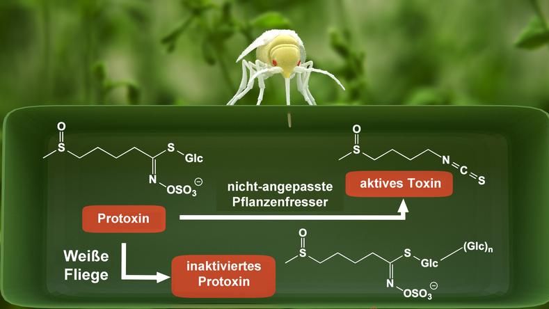Die Pflanzensaft saugende Weiße Fliege Bemisia tabaci kann den Verteidigungsmechanismus von Kreuzblütengewächsen bei Befall aktivieren. Die Weiße Fliege ist allerdings in der Lage, einen Großteil der Abwehrstoffe mithilfe von überschüssigem Zucker, den sie ohnehin verstoffwechseln muss, unschädlich zu machen. Das Insekt nutzt für die Entgiftung der Pflanzenabwehrstoffe einen völlig neuen, bislang noch nicht beschriebenen Entgiftungsmechanismus, der den Erfolg des Schädlings erklären könnte.