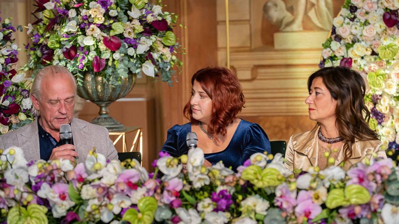 Eröffnet wurde die Veranstaltung von seiner Exzellenz Willem van Ee, dem niederländischen Botschafter in Italien. Seine Hauptbotschaft war die Notwendigkeit der Zusammenarbeit zwischen Floristen, Produzenten und Händlern, um die Vitalität der Hochzeitsblumenindustrie nach der Pandemie wiederzuerlangen. Am italienischen Veranstaltungsort aus dem 17. Jahrhundert bot Patrizia Braida von Bloom's Accademy den Zuschauern einen visuellen Leckerbissen mit floralen Entwürfen, bei denen die typisch romantischen 'Avalanche+'-Rosen mit tropischen Köstlichkeiten aus Anthurium 'Extase' kombiniert wurden.