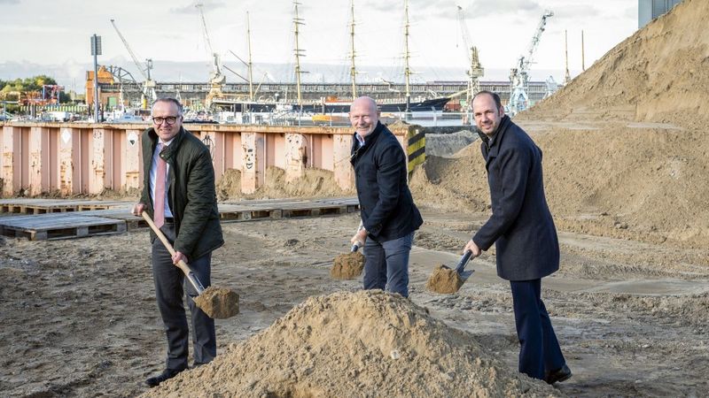 Auch in punkto Nachhaltigkeit eröffnet der im Hafen entstehende Logistik-Komplex neue Perspektiven: Das Gebäude wird über eine Photovoltaik-Anlage mit Sonnenenergie versorgt und über die Abwärme der Kälteanlage beheizt. Fossile Energieträger wie Erdgas entfallen komplett. Parallel dazu erlaubt eine moderne Lade-Infrastruktur zukünftig umfassende E-Mobilität am Standort. Und mittels einer innovativen Packstation können modernste Verpackungslösungen umgesetzt und somit der Materialverbrauch auf ein Minimum reduziert werden.