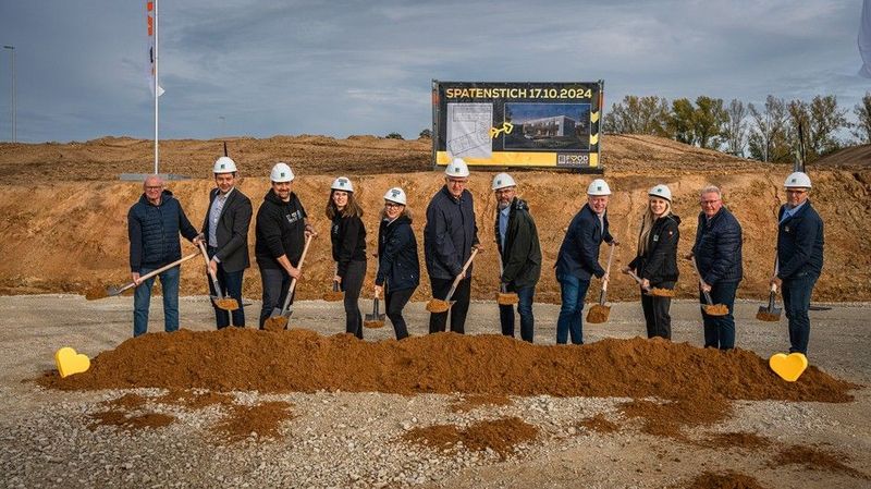 Hierzu folgte nun in Hirschaid, In der Röthe 3, im Beisein von Bürgermeister Klaus Homann, Mitgliedern des Gemeinderats und EDEKA-Vorstand Gert Lehmann der Spatenstich für die Entstehung des neuen Weiterbildungs-Campus.
