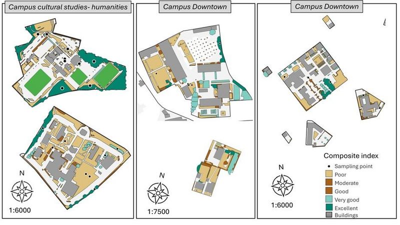 Die Forschenden haben auf 120 Grünflächen in den verschiedenen Campusbereichen der JLU Proben genommen und die Bodengesundheit in diesen Flächen in unterschiedlichen Tiefen analysiert. Sie nutzten dafür einen neu entwickelten Index aus physikalischen und chemischen Bodeneigenschaften. Dabei zeigte sich: Weniger intensiv bewirtschaftete Grünflächentypen wie Flächen mit Gehölzen und Wildblumenwiesen zeigten eine höhere Bodengesundheit als kurz geschnittene Rasenflächen und wiesen höhere Kohlenstoffvorräte auf.