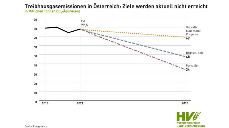 Im Jahr 2021 sind die Emissionen auf 77,5 Mio. Tonnen gestiegen. Geht man von der Einschätzung des Umweltbundesamtes aus, so wird Österreich im Jahr 2030 auf Basis der aktuellen Maßnahmen 69 Mio. Tonnen Treibhausgase (THG) emittieren. Nach den Vorgaben von Brüssel soll Österreich im Jahr 2030 höchstens 48 Mio. Tonnen THG und nach den Pariser Klimazielen noch höchstens 34 Mio. Tonnen THG ausstoßen. Fazit: Ohne wirksamere und konsequente Maßnahmen wird Österreich die Ziele aus Paris und die Vorgaben aus Brüssel weit verfehlen! „Um die Erderwärmung nicht weiter zu beschleunigen und Zahlungen laut einem Bericht des Rechnungshofes von 2021 zum Thema Klimaschutz in Österreich von bis zu 9 Mrd. Euro bis 2030, die beim Ankauf von Emissionszertifikaten anderer EU-Mitgliedstaaten entstehen, zu verhindern, braucht es jede einzelne Maßnahme. Maßnahmen, die zudem auch einfach umsetzbar wären: Das geht von einem geänderten Mobilitätsverhalten hin zu noch mehr Öffentlichen Verkehr, über den Konsum heimischer Lebensmittel und damit zu einer Stärkung des Agrarsektors bis hin zu einer Reduktion des Bodenverbrauchs. Denn unsere Äcker und Wiesen sind die natürlichste und effizienteste Klimaanlage und zudem ist Bodenschutz auch Klimaschutz“, appelliert Weinberger abschließend.