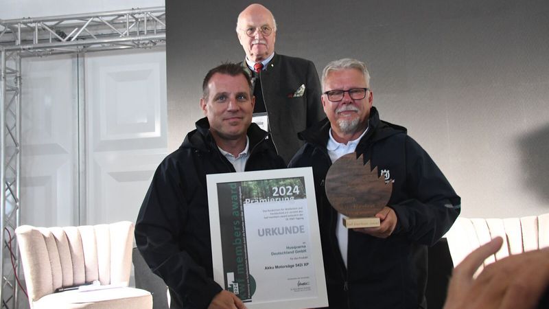 Am 19. Juni 2024 wurde die Husqvarna 542i XP Akku-Kettensäge auf der 18. KWF-Tagung mit dem begehrten KWF Members Award ausgezeichnet. Mit dem Award prämiert das Kuratorium für Waldarbeit und Forsttechnik (KWF) Produkte, die eine Innovation für die Forstpraxis darstellen und neue Verfahren ermöglichen oder bestehende Verfahren verbessern. Auch in diesem Jahr wurden aus den Einreichungen 45 Produkte in einer Vorauswahl nominiert und die 10 besten Produkte von den über 2.000 KWF-Mitgliedern mit dem Preis ausgezeichnet.