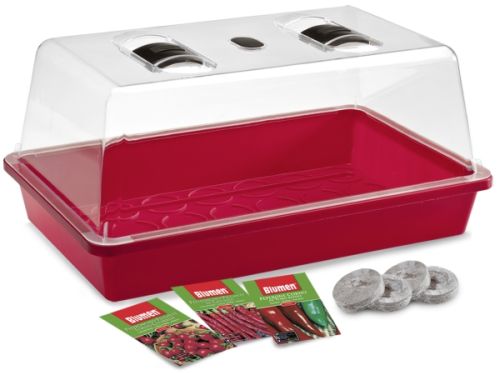 Das Chili-Gewächshaus gehört zur Jiffy Serie „My First Garden“, die auch andere Themenbereiche wie „Vive la France“ und „Viva Italia“ abdeckt und dafür beispielsweise Saatgut für Ratatouille oder Gemüse-Antipasti beinhaltet. Da die Mini-Gewächshäuser kaum Platz beanspruchen, passen sie selbst auf schmale Fensterbänke und kleine Balkone. Verstellbare Lüftungsklappen und ein lichtdurchlässiges Gehäuse sorgen für eine optimale Belüftung und Temperierung der Jungpflanzen und bieten so die bestmögliche Umgebung für ein erfolgreiches und stabiles Wachstum.