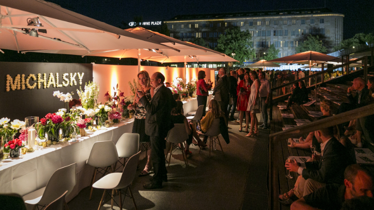 Floraler Blickpunkt des prominent besetzten Modeevents war das große MICHALSKY Logo, das Landgard mit Unterstützung professioneller Floristen speziell für diesen Abend aus echten Rosen erblühen ließ. An verschiedenen Punkten in der außergewöhnlichen Location, die mit ihrer Zirkuszelt-Optik selbst schon zum Träumen einlud, unterstrichen außerdem ausgewählte Rosenboxen aus der MICHALSKY Flowers- Kollektion das modische Gespür von Michael Michalsky für Interior Design.