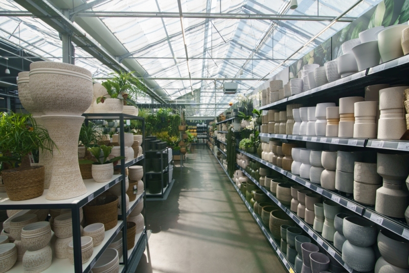 Schon bei der Planung legte Dehner viel Wert darauf, Kunden ein inspirierendes Einkaufserlebnis zu bieten. Sowohl für drinnen als auch für draußen bietet der Markt ein umfangreiches grünes Sortiment. Ergänzt durch Gartengeräte und -zubehör sowie Möbel für Balkon und Terrasse, Erde, Dünger und Pflanzgefäße finden Gartenliebhaber alles, was das Gärtnerherz begehrt. Die Home- und Trendabteilung sorgt für saisonale Inspiration für das eigene Zuhause. Eine umfangreiche Auswahl an Heimtierbedarf und Tierfutter findet sich auf 510 m² qm in der Zooabteilung. Die lichtdurchflutete Stahl-Glas-Konstruktion bietet optimale Bedingungen für die Pflanzen und zugleich ein modernes Ambiente für ein inspirierendes Shoppingerlebnis.