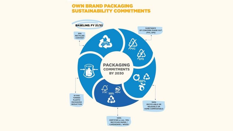 Im Einklang damit hat METRO seine eigenen Verpackungsziele überarbeitet sowie die Zielsetzungen nachgeschärft. Bezogen auf das Basisjahr 2021/22 gelten für die Eigenmarkenverpackungen bis zum Jahr 2030 künftig folgende Ziele: