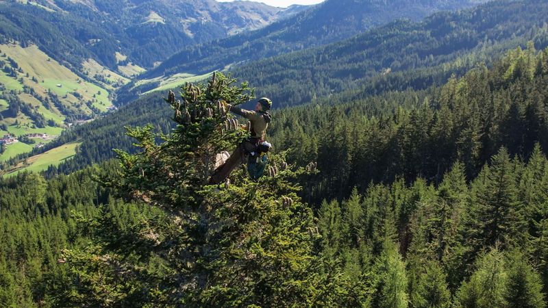 Je nach Baumart ist die Zapfenernte sehr unterschiedlich. Besonders anspruchsvoll und „sportlich“ ist sie etwa bei der Tanne, da sie nur von Baumkletterern durchgeführt werden kann. Die Samenbäume sind durchschnittlich 100 Jahre alt und 30 bis 40 Meter hoch. Ausgestattet mit Seil, Klettergurt, Jutesack und Erntehaken, klettern die „Zapfenpflücker“ in die Baumwipfel, um die Tannenzapfen per Hand zu ernten. „Geerntet wird ausschließlich in anerkannten und zertifizierten Beständen, um höchste Saatgutqualität zu gewährleisten“, so Gruber.