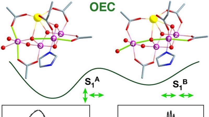 Die in der Zeitschrift “Angewandte Chemie“ erschienene Publikation von Pantazis und Koautoren benutzt modernste quantenchemische Methoden in Kombination mit anspruchsvollen magnetischen Messmethoden („Electron Paramagnetic Resonance“, EPR, Spektroskopie), um strukturelle Einblicke in die Reaktionsintermediate der Wasseroxidation zu erhalten. Die Analyse der Daten legt nahe, dass bereits im Ausgangszustand des Enzymes (dem „resting state“ oder auch „S1 State“ genannt) zwei Isomere des Katalysators vorliegen, welche die Forscher als „Jahn-Teller Orientierungs-Isomere“ bezeichnet haben. Dieser Effekt führt dazu, dass die im aktiven Zentrum der Photosynthese enthaltenen Manganionen in unterschiedlichen Richtungen Verzerrungen ihrer Koordinationssphäre erleiden können, welche zu der beobachteten strukturellen Vielfalt führen.