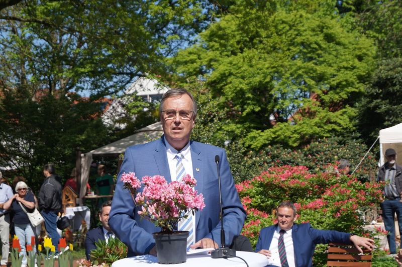 In diesem Jahr ist der den Machern der RHODO besonders gelungen, die Region der Stadt und die Herkunft der Rhododendron für alle Besucher einzufangen. Allen voran ist dabei Gärtnermeister Jens Kujawski zu nennen, der die Federführung der Planung inne hat. Bei ihn stehen die Pflanzen im Mittelpunkt. So gilt für die RHODO 2023 ein "bach to the roots", es sei eine Ausstellung für die Westersteder, die alle Gäste herzlich willkommen heißen würden. Bürgermeister Michael Rösner sieht in der RHODO aber isbersondere auch die Möglichkeit, eine Plattform für die Baumschulbetriebe zu schaffen, auf der diese ihre Leistungsfähigkeit unter Beweis stellen können.